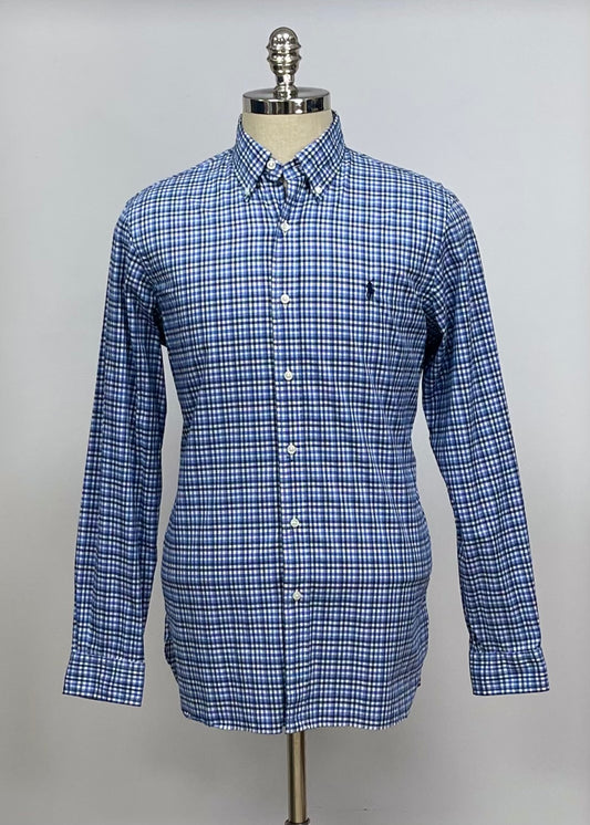 Camisa Polo Ralph Lauren 🏇🏼 con patron de cuadros en celeste, azul y blanco Talla M Entalle Regular