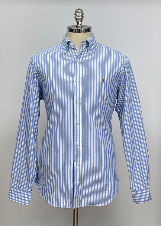 Camisa Polo Ralph Lauren 🏇🏼 Oxford color celeste con rayas en color blanco Talla M Entalle Regular