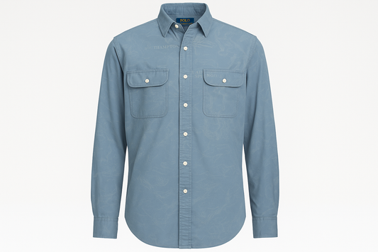 Camisa de botones Polo Ralph Lauren 🏇🏼 color celeste grisáceo con diseño de mapa Talla L Entalle Regular
