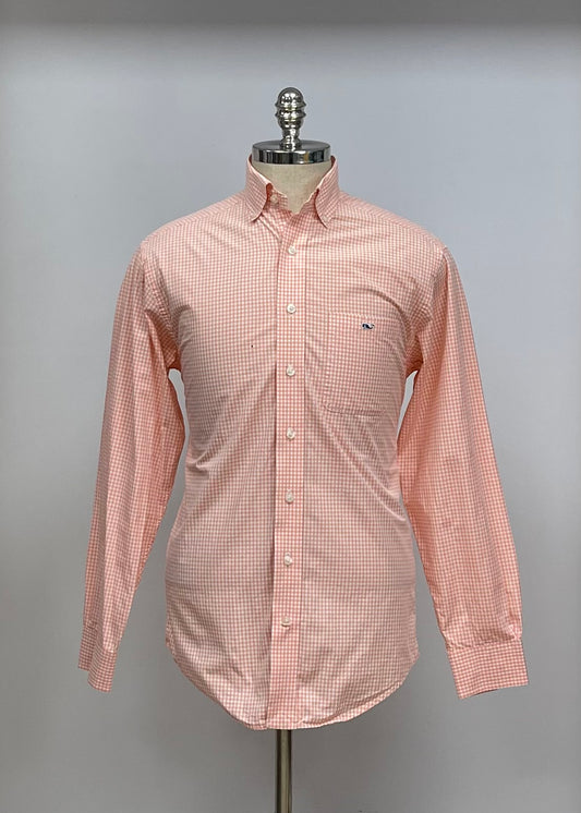 Camisa de botones Vineyard Vines 🐳 de cuadros en color naranja claro y blanco Talla M Entalle Regular