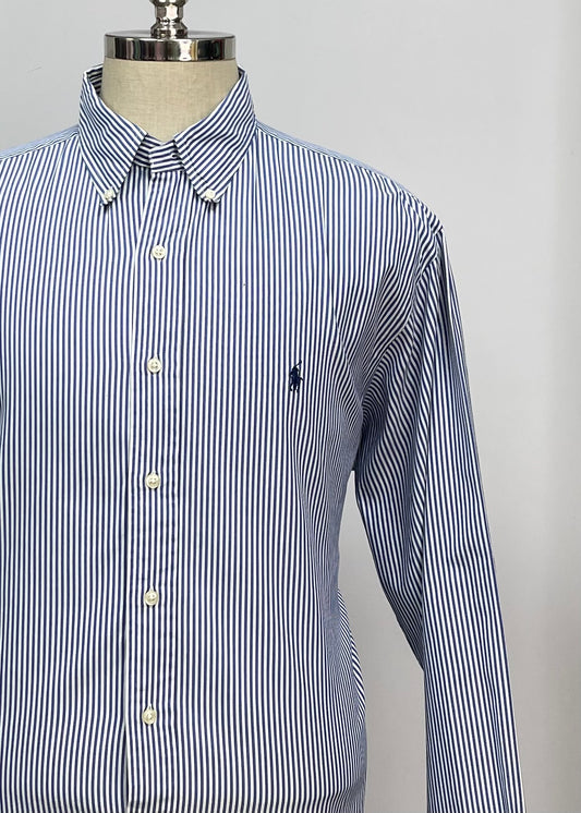 Camisa Polo Ralph Lauren 🏇🏼 con patrón de rayas en azul y blanco Talla XL Entalle Clásico