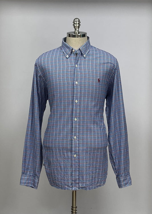Camisa Polo Ralph Lauren 🏇🏼 con patron de cuadros gingham azul y blanco Talla L Entalle Regular