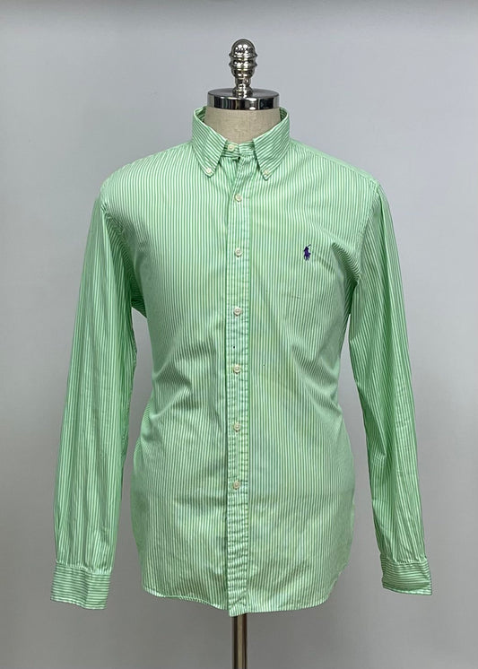 Camisa Polo Ralph Lauren 🏇🏼 con patron de rayas en color verde y blanco Talla L Entalle Regular