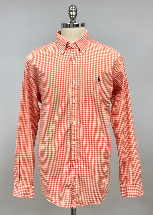 Camisa Polo Ralph Lauren 🏇🏼 con patron de cuadros gingham naranja y blanco Talla L Entalle Regular