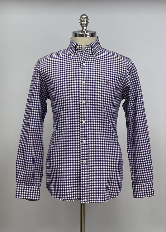 Camisa Polo Ralph Lauren 🏇🏼 Oxford color blanco con cuadros morado Talla M Entalle Regular