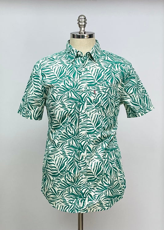 Camisa marca Levis 👖color blanco con diseño de hojas en color verde Talla M Entalle Regular