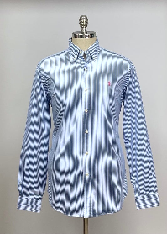 Camisa Polo Ralph Lauren 🏇🏼 con patrón de rayas en celeste y blanco Talla M Entalle Regular