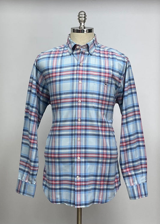 Camisa de botones Vineyard Vines 🐳 con patrón de cuadros en color azul, rosado y celeste Talla L Entalle Slim Fit