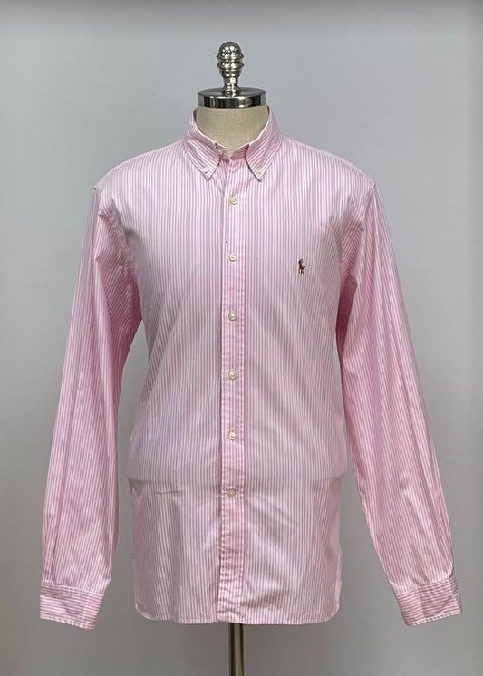 Camisa Polo Ralph Lauren 🏇🏼 con patron de rayas en color rosado y blanco Talla XL Entalle Regular