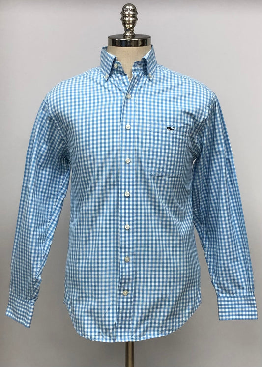 Camisa Vineyard Vines 🐳 con patron cuadros gingham en color celeste y blanco Talla S Entalle Regular