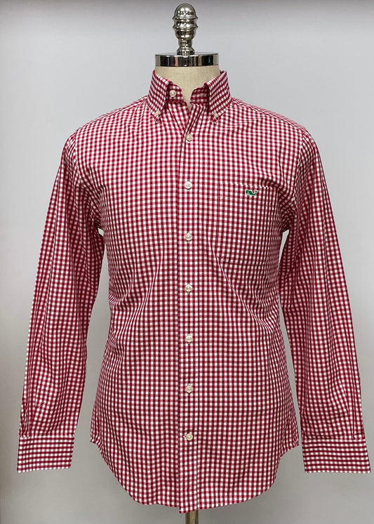 Camisa Vineyard Vines 🐳 con patron de cuadros gingham en color rojo y blanco Talla S Entalle Regular