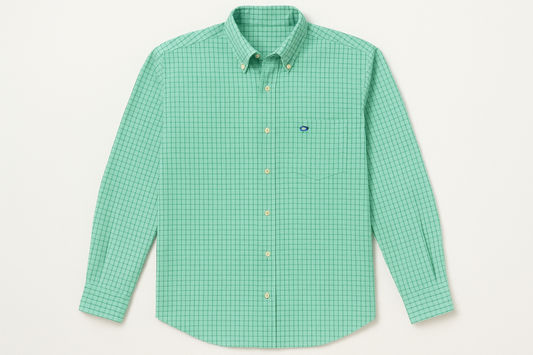 Camisa de botones Southern Tide 🐟 Color Blanco con patron de cuadros en color verde y azul navy Talla L Entalle Regular
