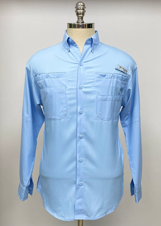Camisa Columbia 🔹color Celeste con Omni Shade Manga larga Talla S