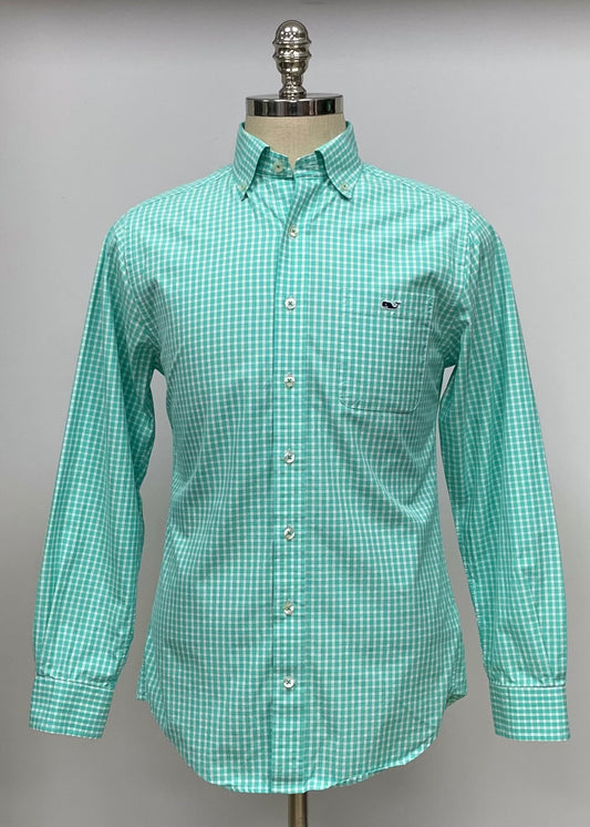 Camisa de cuadros Vineyard Vines 🐳 en color turquesa y blanco Talla S Entalle Slim Fit