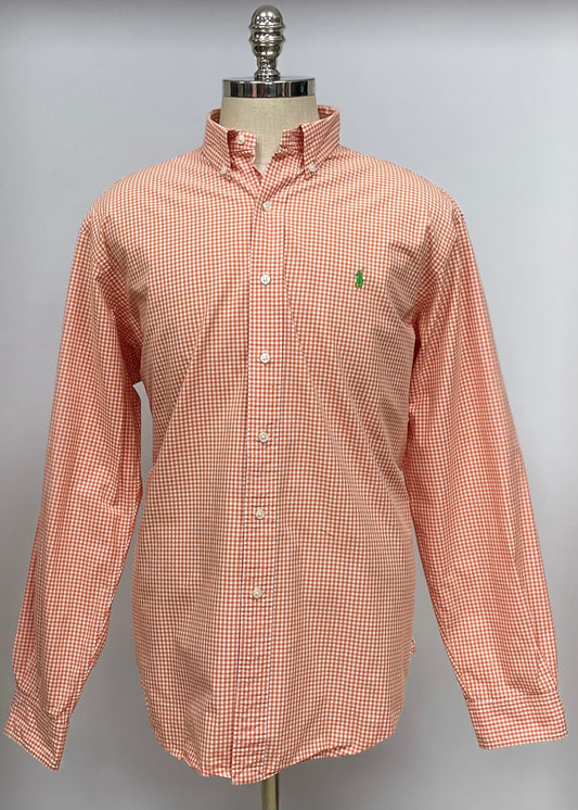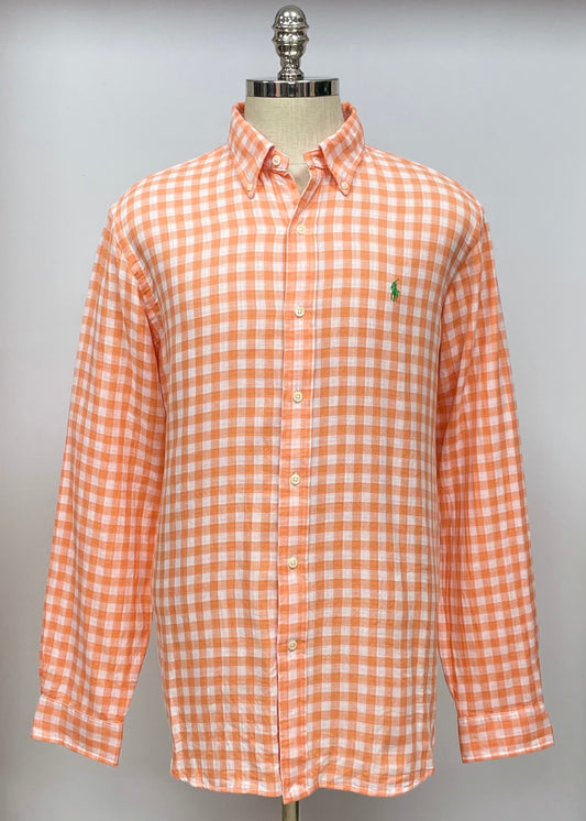 Camisa Polo Ralph Lauren 🏇🏼 con patron de cuadros gingham naranja y blanco Talla XL Entalle Clásico
