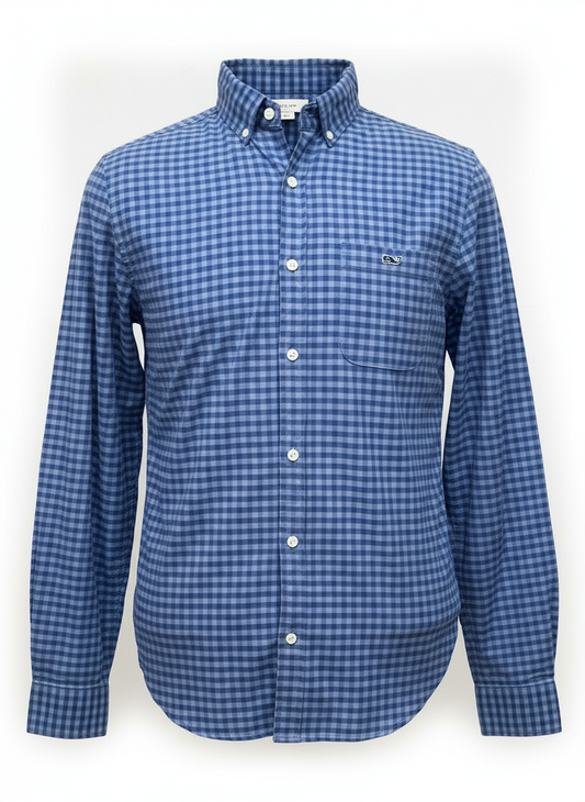 Camisa Vineyard Vines 🐳 de cuadros en color azul, celeste y blanco Talla S Entalle Slim Fit