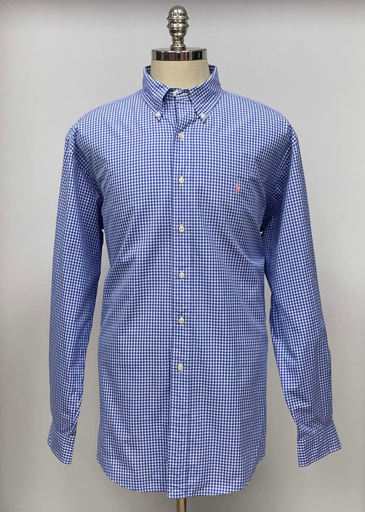 Camisa Polo Ralph Lauren 🏇🏼 con patrón de cuadros gingham celeste y blanco Talla XL Entalle Clásico