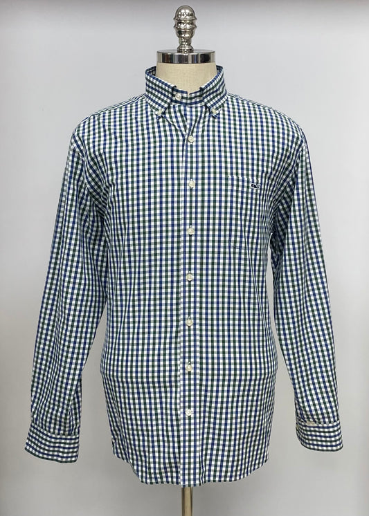 Camisa de botones Vineyard Vines 🐳 color blanco de cuadros gingham en color azul navy y verde oscuro Talla L Entalle Slim Fit