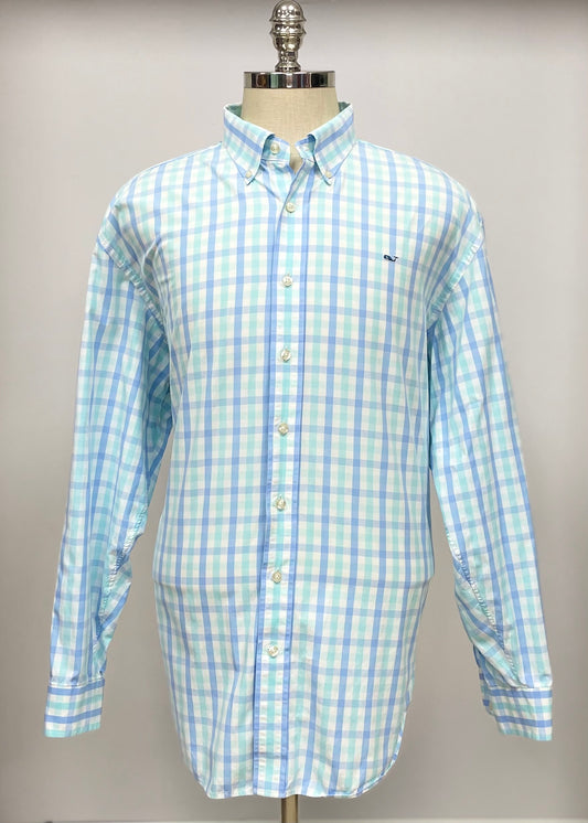 Camisa de botones Vineyard Vines 🐳 color blanco de cuadros en color celeste y turquesa Talla XXL Entalle Regular