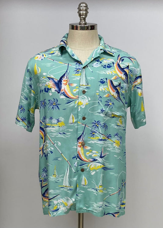 Camisa de botones Polo Ralph Lauren 🏇🏼 Tela ligera en color verde claro con diseño marino en color azul Talla S Entalle Regular