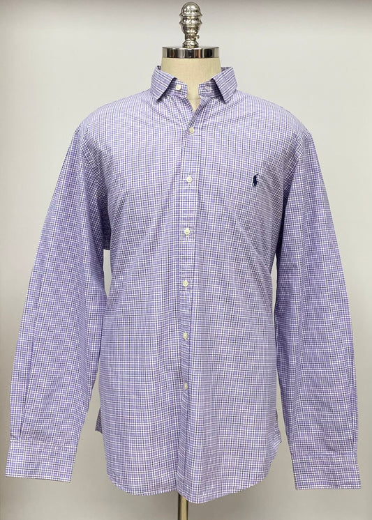 Camisa Polo Ralph Lauren 🏇🏼 color blanco con cuadros morado y azul Talla XXL Entalle Regular