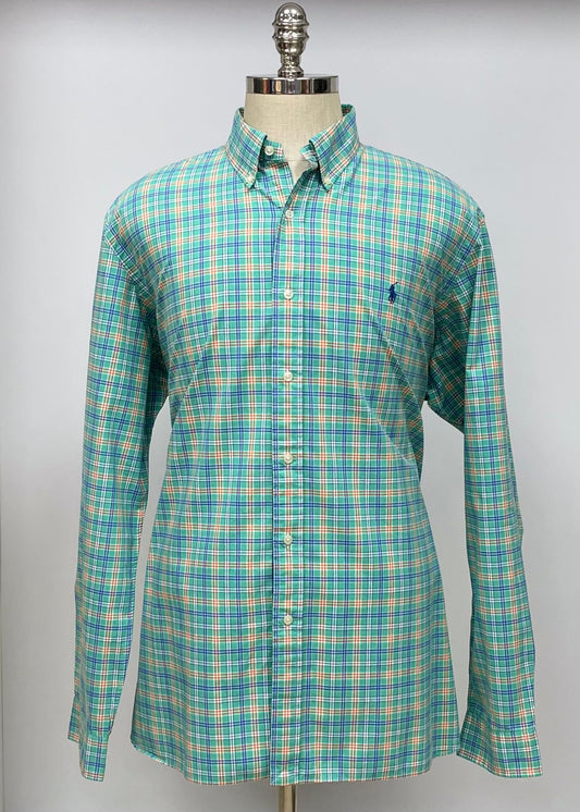 Camisa Polo Ralph Lauren 🏇🏼 color verde con cuadros naranja y azul Talla XXL Entalle Regular