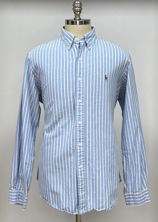 Camisa Polo Ralph Lauren 🏇🏼 Oxford color celeste con rayas en color blanco Talla L Entalle Regular