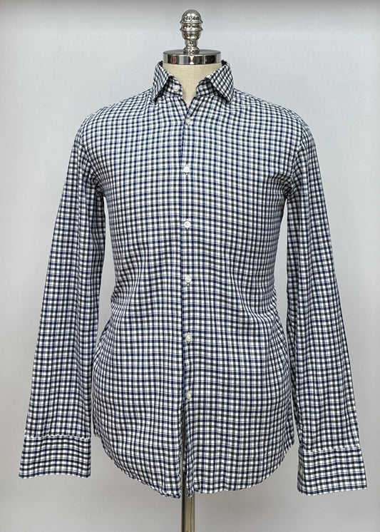 Camisa de botones Hugo Boss 🇩🇪 color blanco con patrón de cuadros azul y negro Talla M Entalle Slim Fit