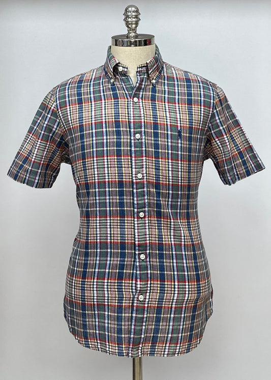 Camisa Polo Ralph Lauren 🏇🏼 con patron de cuadros tartán en color azul, verde oscuro y rojo Talla M Entalle Regular