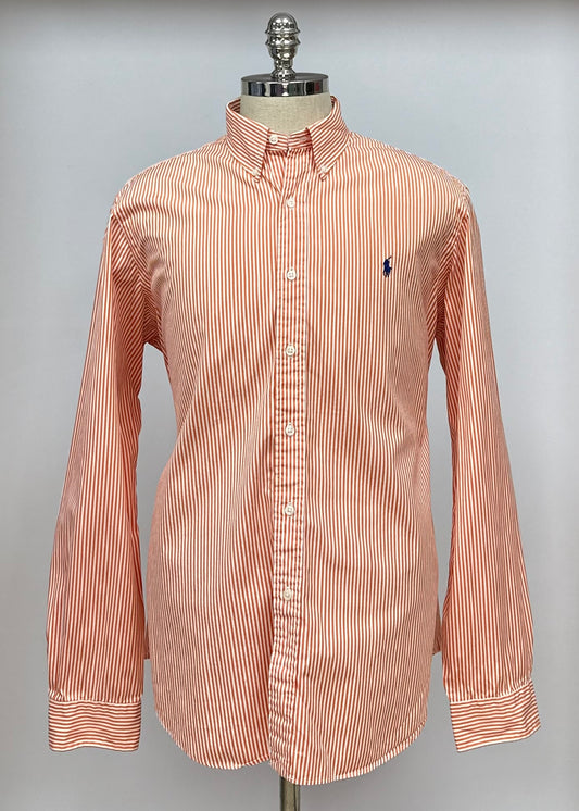 Camisa Polo Ralph Lauren 🏇🏼 color blanco con patron de rayas en color naranja Talla XL Entalle Regular