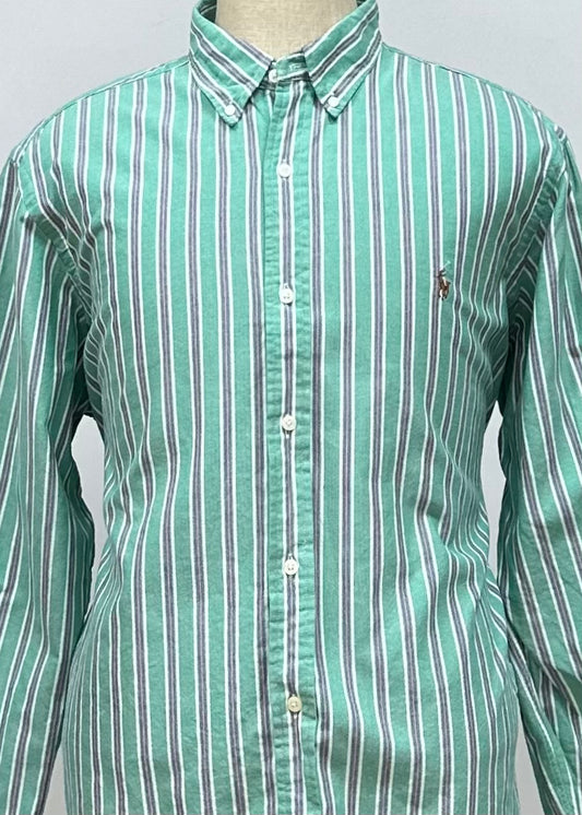 Camisa Polo Ralph Lauren 🏇🏼 color verde claro con patron de rayas en color gris y blanco Talla XXL Entalle Clásico