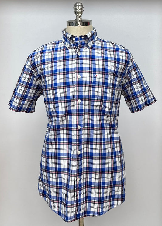 Camisa Tommy Hilfiger 🇺🇸 color blanco con patrón de cuadros en azul y rojo Talla M Entalle Regular