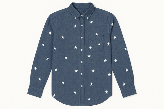 Camisa de jeans Polo Ralph Lauren 🏇🏼 color azul grisáceo y diseño de estrellas Talla L Entalle Slim Fit