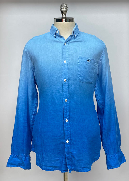 Camisa de lino Vineyard Vines 🐳 con diseño en tie-dye degradado color celeste y azul Talla L Entalle Slim Fit