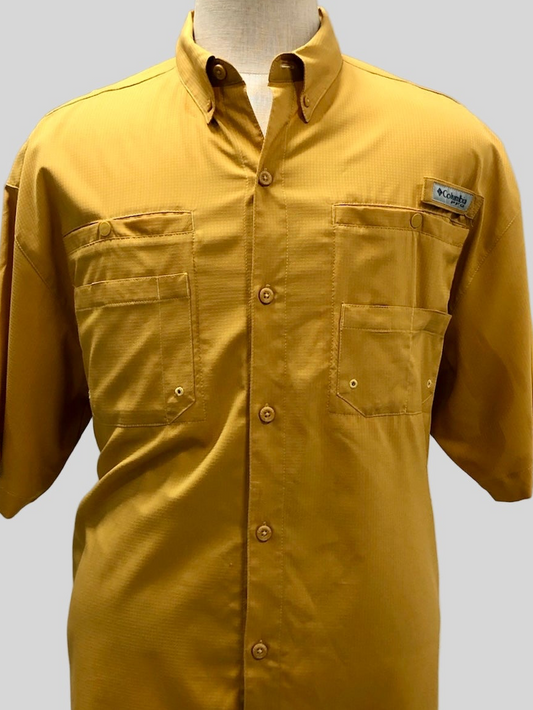 Camisa de botones Columbia 🔹color mostaza con Omni Shade Manga corta Talla M