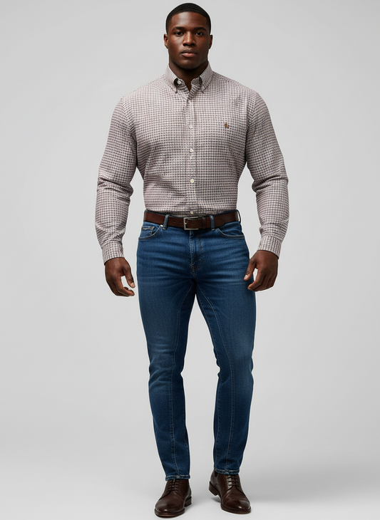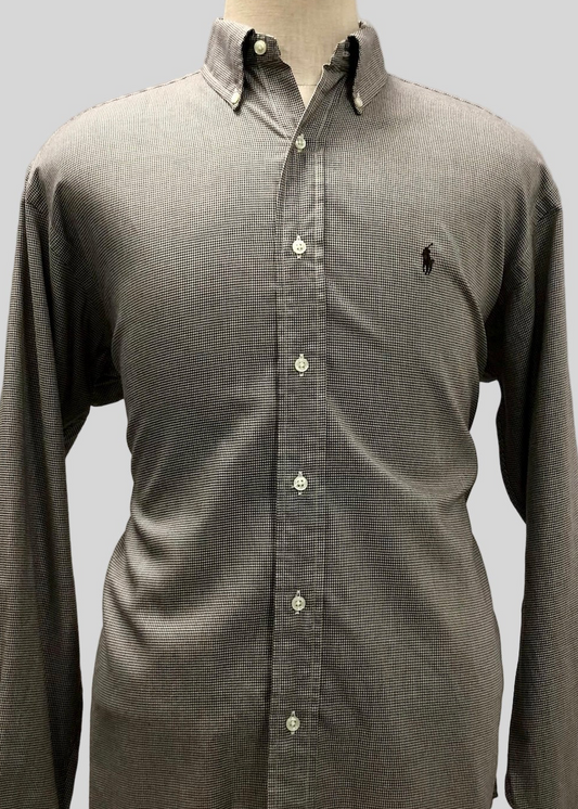 Camisa de botones Polo Ralph Lauren 🏇🏼 con patron de cuadros finos marrón y blanco Talla L Entalle Regular
