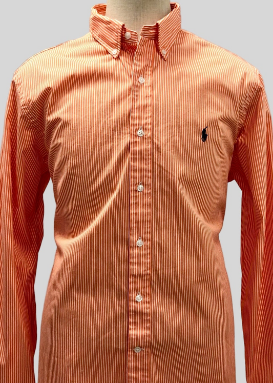 Camisa Polo Ralph Lauren 🏇🏼 con patron de rayas finas en color naranja y blanco Talla XL Entalle Regular