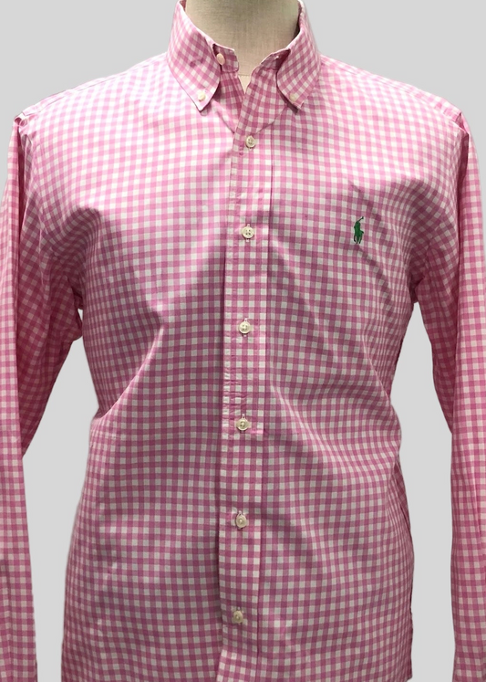 Camisa Polo Ralph Lauren 🏇🏼 de cuadros gingham rosado y blanco Talla L Entalle Custom Fit