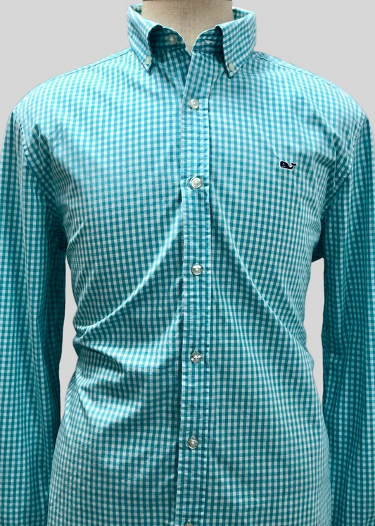 Camisa de botones Vineyard Vines 🐳 de cuadros gingham en color turquesa claro y blanco Talla L Entalle Regular
