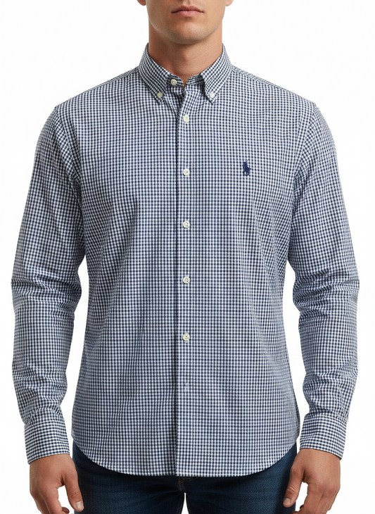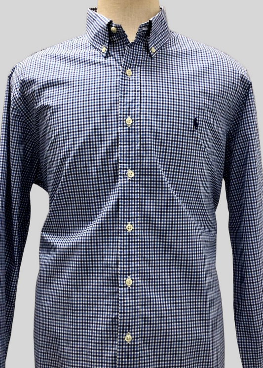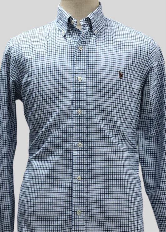 Camisa Polo Ralph Lauren 🏇🏼 de cuadros en color azul, negro y blanco Talla L Entalle Regular