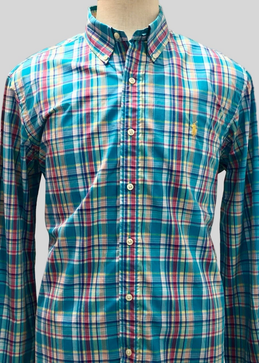 Camisa Polo Ralph Lauren 🏇🏼 de cuadros gingham turquesa, rojo y blanco Talla L Entalle Regular