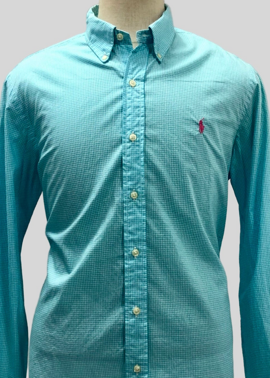 Camisa Polo Ralph Lauren 🏇🏼 con patrón de cuadros gingham turquesa y blanco Talla L Entalle Regular