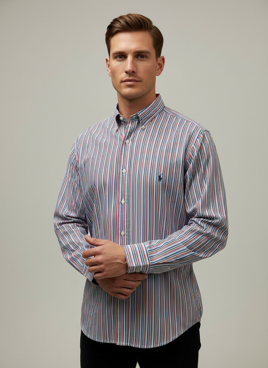 Camisa Polo Ralph Lauren 🏇🏼 de rayas en color rojo, azul y blanco Talla L Entalle Clásico