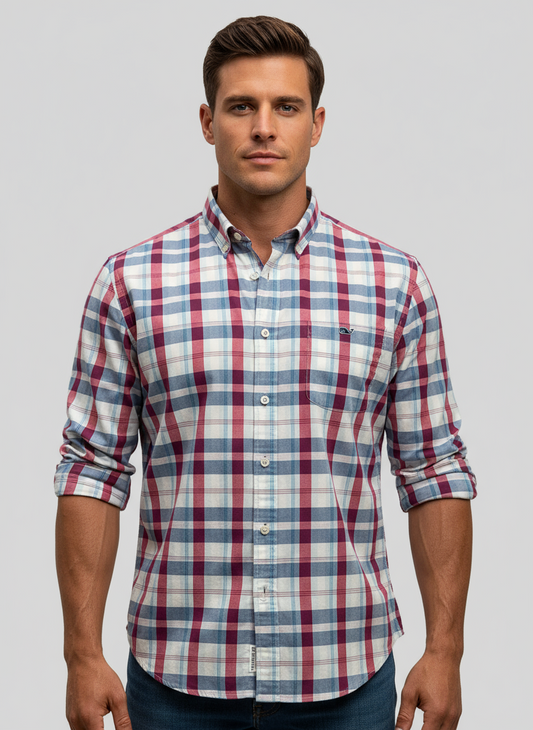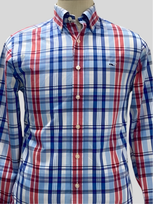 Camisa de botones Vineyard Vines 🐳 de cuadros en color rojo, azul y blanco Talla M Entalle Slim Fit