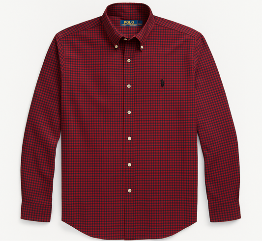 Camisa Polo Ralph Lauren 🏇🏼 con patron de cuadros gingham rojo y negro Talla M Entalle Clásico