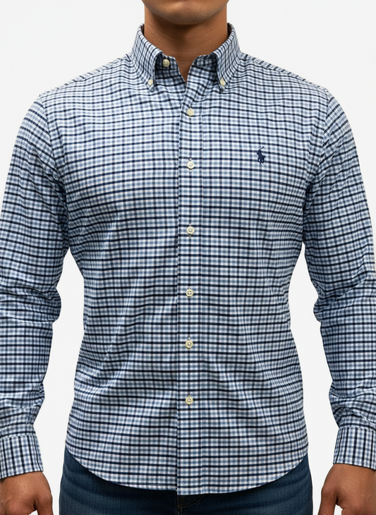 Camisa Polo Ralph Lauren 🏇🏼 Performance color blanco de cuadros azul y celeste Talla M Entalle Clásico