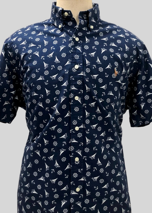 Camisa de botones Polo Ralph Lauren 🏇🏼 Oxford color azul navy con diseño de náutico en blanco Talla XL Entalle Clásico