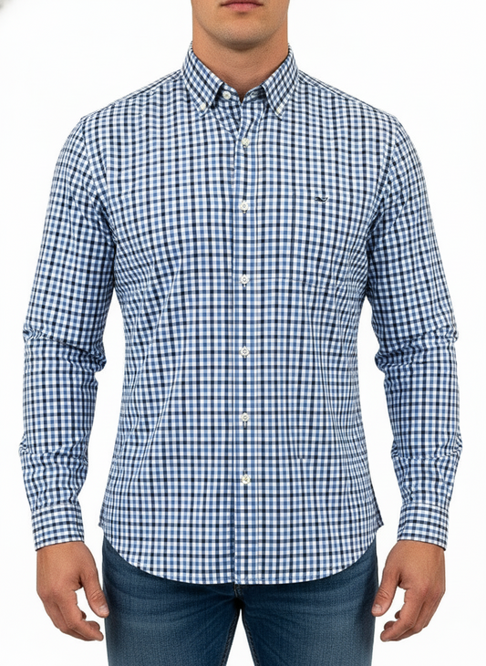 Camisa de botones Vineyard Vines 🐳 color blanco de cuadros en celeste y azul navy Talla S Entalle Clásico