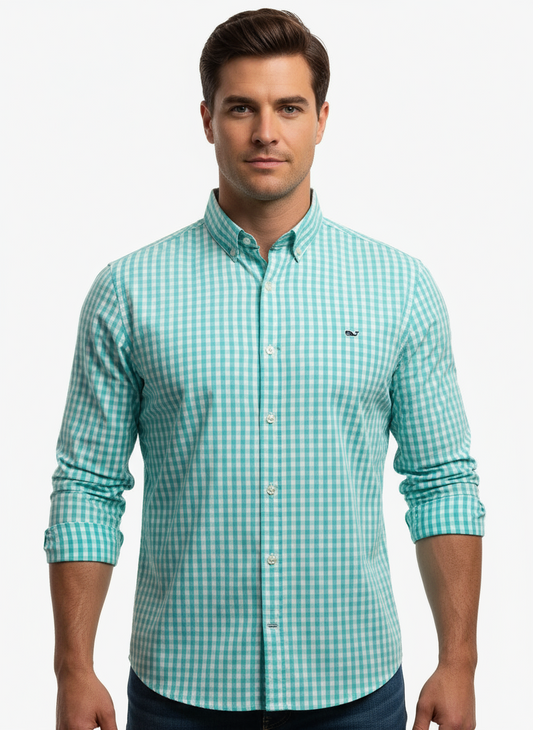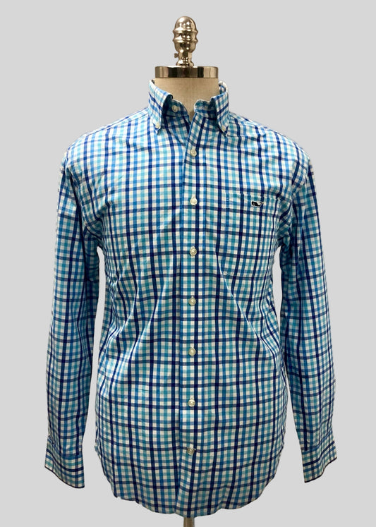 Camisa de botones Vineyard Vines 🐳 de cuadros en color turquesa y blanco Talla M Entalle Slim Fit