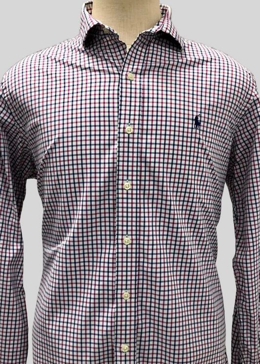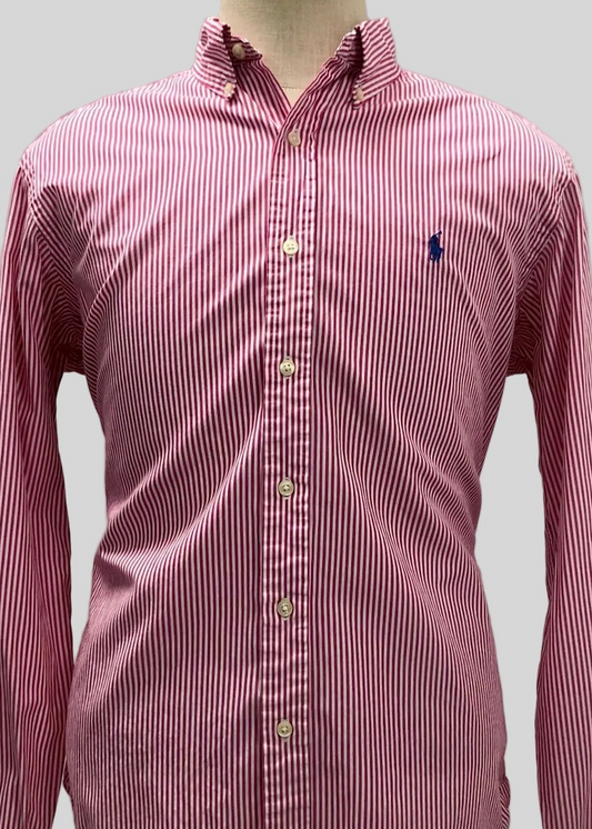 Camisa Polo Ralph Lauren 🏇🏼 con patron de rayas en color rojo y blanco Talla S Entalle Clásico